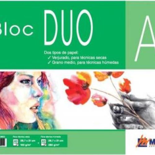 Bloc encolat amb 40 fulls de paper verjurat 100 gr. i altres 40 fulls de paper aquarel·la gra mitjà de 280 gr. Indicat per a tècniques seques i humides.