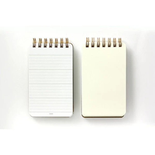 Aquest bloc de notes presenta una combinació de cuir espanyol reciclat i paper japonès d´alta qualitat fabricat per MD Paper Products. El paper té pàgines llises i pàgines amb línies ratllades.
