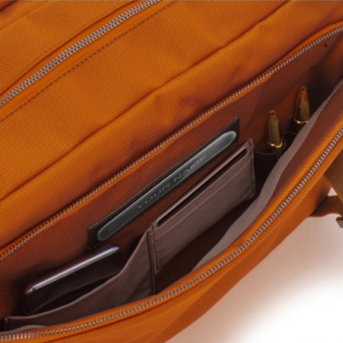 95% Polièster 2% Pell bovina 3% PU. Bossa missatger en resistent polièster i amb elegants detalls en pell natural. Incorpora una placa metàl·lica a l’interior per personalitzar mitjançant un gravat amb el teu nom o un missatge especial. Composta per un ampli compartiment expandible que inclou una butxaca per a l’ ordinador portàtil de 15,6″ i un altre amb cremallera. A sota de la solapa, una altra gran butxaca amb porta targeres, porta llapis i butxaca per al mòbil. A la part de darrere, una altra butxaca amb cremallera i un sistema d’enganxada al trolley. El Bossa inclou assaja de mà amagable i bandolera regulable. Bandolera ajustable