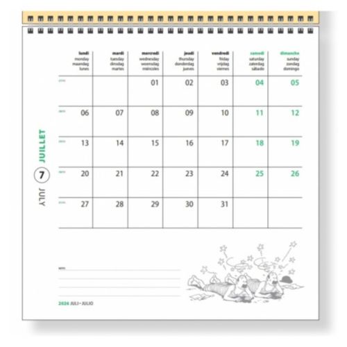 Aquest calendari Tintín 2026 és ideal per a autèntics fans del jove reporter i les seves aventures icòniques. Cada mes et submergiràs en una il·lustració única de l’univers de Tintín, amb detalls i escenes que recorden els millors moments dels còmics clàssics. Amb la seva mida de 30×30 cm, aquest calendari destaca a qualsevol paret i és perfecte tant per organitzar el teu dia a dia com per donar un toc de personalitat a casa teva o a l’oficina. Gaudeix de l’art de Hergé durant tot l’any amb aquest calendari exclusiu, només disponible a Raima!