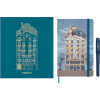 Cada quadern ve amb una targeta temàtica i un bolígraf Kaweco recarregable en ABS, que es complementa amb la recàrrega G2 de 1,00 mm, per a una experiència d’escriptura fluïda i professional.