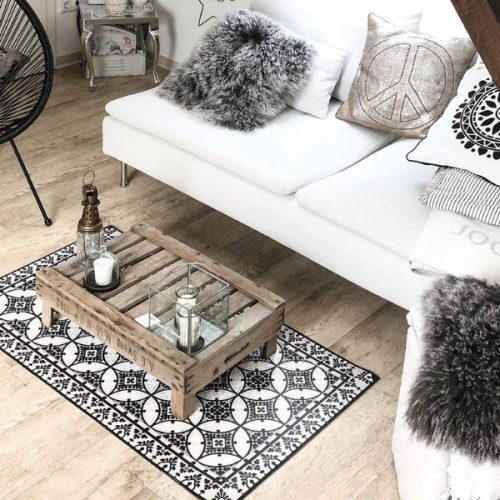 Catifa de vinil de formigó Barcelona en blanc i negre 120 x 195 cm