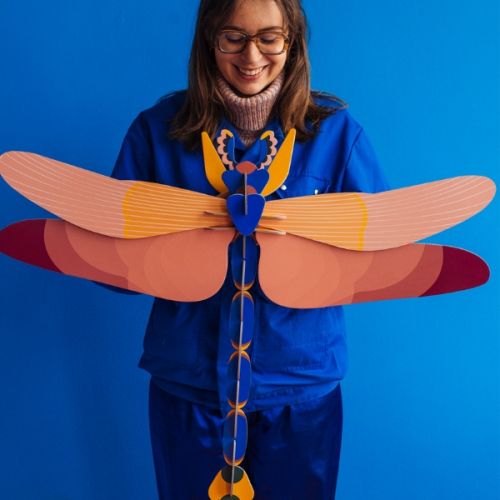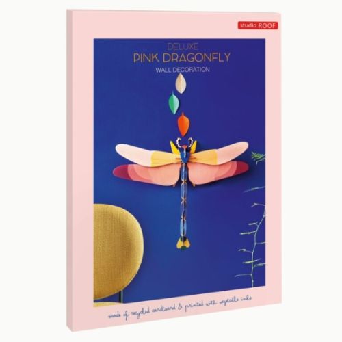 Figura de libèl·lula rosa amb acabats de luxe i un disseny lleuger i sofisticat per a espais amb encant.