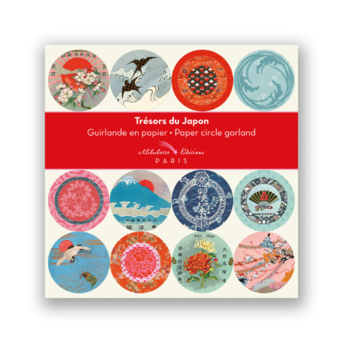 Garlanda de paper amb il·lustracions del Japó de finals del segle XIX i principis del XX. Presenta ventalls, ocells, flors de cirerer i Fujiyama…