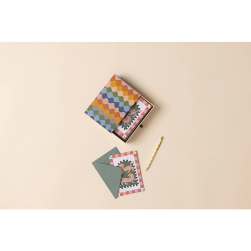 Aquesta col·lecció de papereria premium inclou 16 targetes i sobres en quatre patrons únics i bellament dissenyats, perfectes per a notes d’agraïment, desitjos de felicitació, invitacions o missatges quotidians.