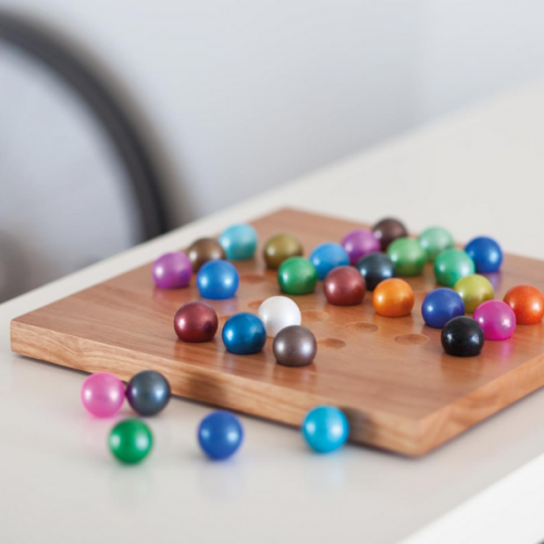 El Solitari, el joc clàssic per una sola persona, que ja es jugava amb segle XVII. Hem reimaginat el joc perquè sigui encara més divertit i entretingut. No és gens fàcil fer que les boles de vidre de colors saltin sobre el robust tauler de fusta de manera que només en quedi una peça.