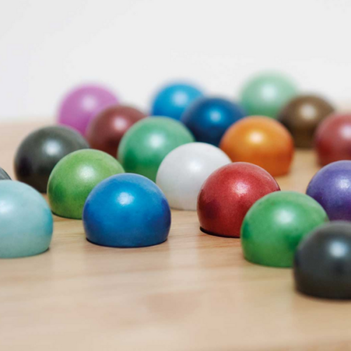 - A partir de 5 anys, tauler de joc i 32 boles de joc (de colors, en bossa de tela), incloses les regles del joc.