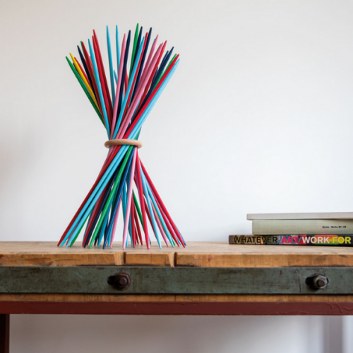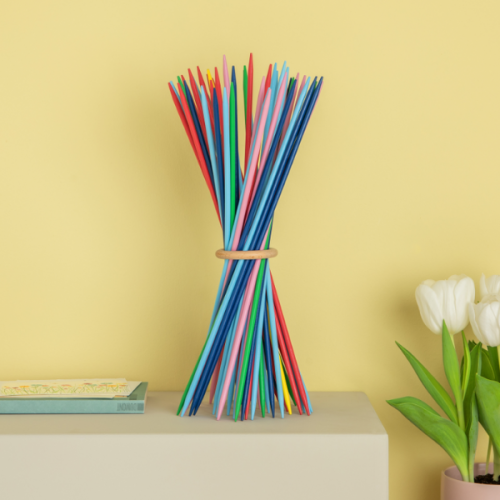 Pot exisitir un objecte de disseny i un joc alhora? Sí, gràcies a Stickado! Els pals de fusta de colors de 40 centímetres de llargada es poden decorar en un objecte de disseny inusual utilitzant l’anell de fusta. Tant si es disposen amb aquesta forma per formar un ram de colors com si s’utilitzen com un joc d’habilitat clàssic a l’estil Mikado, tant els amants del disseny com dels jocs hi trobaran el que volen.
