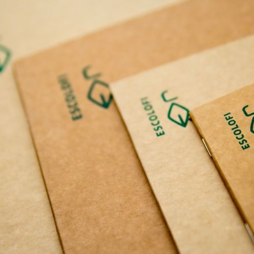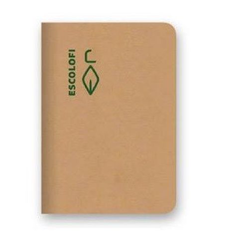 Llibreta grapada mida DIN A7. Tapes de cartró rígid reciclat, color natural (certificat per FCR ®) 50 fulls de paper de 80gr, llis (certificat per FCR ®)