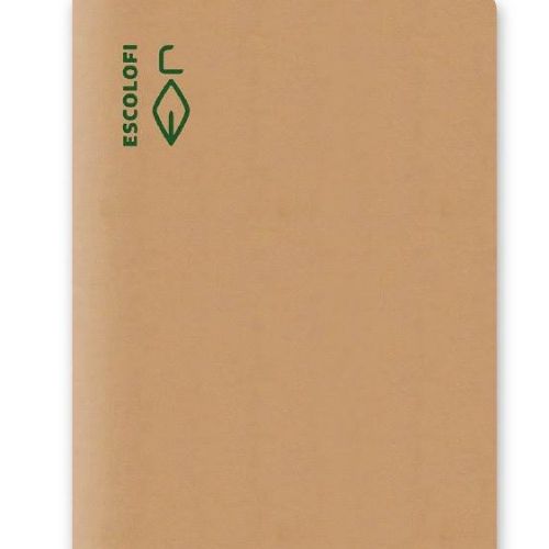 Llibreta grapada mida DIN A4. Tapes de cartró rígid reciclat, color natural (certificat per FCR ®) 50 fulls de paper de 80gr, amb punts (certificat per FCR ®)