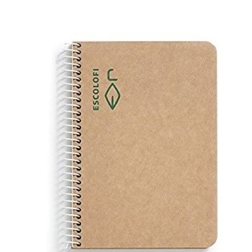 Llibreta despiral mida DIN A6. Tapes de cartró rígid reciclat, color natural (certificat per FCR®). 100 fulls de paper reciclat de 80gr, amb punts (certificat per FCR®).