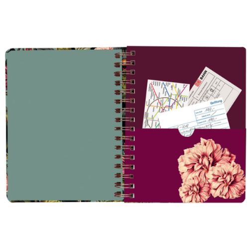 Llibreta espiral amb 180 fulls, cadascuna impresa amb decoració de colors. Perfecta per a diari, ideal pels teus plans, idees i desitjos. L’enquadernació en tapa dura i la banda elàstica de lúrex fan d’aquesta carpeta d’anelles el company ideal a la feina.