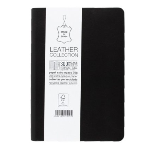 Tapes de pell amb goma índex. 300 fulls. Paper extra opac 70g. Amb índex A-Z. Quadricula 5mm gris.