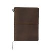 La mida de la funda passport (13.4×10.5cm) és de la mida del passaport, que la podeu utilitzar a mode de coberta juntament amb el quadern de notes. La llibreta fabricada per Midori especialment per escriure fins i tot amb estilogràfica. El disseny senzill accepta personalitzar-la, juntament amb el color i la brillantor de la pell que es produeix a mesura que sutilitza.