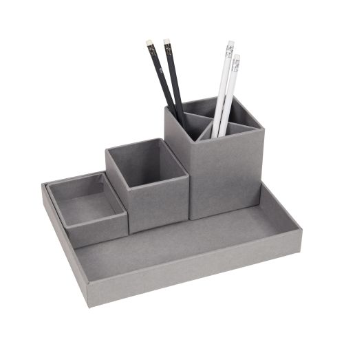 Organitzador d’escriptori de quatre peces separades ideals per mantenir els articles petits en ordre. Aquest organitzador està equipat amb peus de goma per mantenir-lo estable. També, pots combinar aquest set amb qualsevol de les safates de la mateixa família (codi safata:196642).