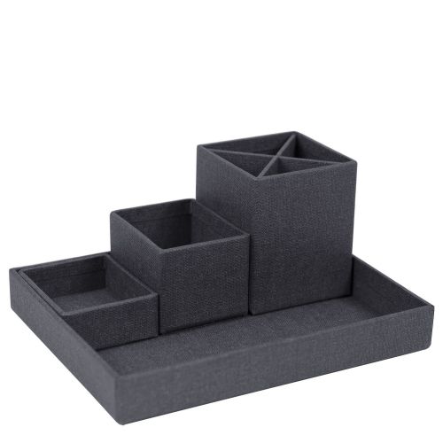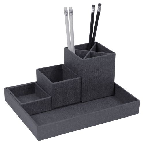 Organitzador d’escriptori de quatre peces separades ideals per mantenir els articles petits en ordre. Aquest organitzador està equipat amb peus de goma per mantenir-lo estable. També, pots combinar aquest set amb qualsevol de les safates de la mateixa família (codi safata:196642).