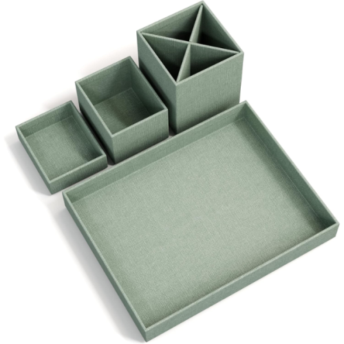 Organitzador d’escriptori de quatre peces separades ideals per mantenir els articles petits en ordre. Aquest organitzador està equipat amb peus de goma per mantenir-lo estable. També, pots combinar aquest set amb qualsevol de les safates de la mateixa família (codi safata:191504).