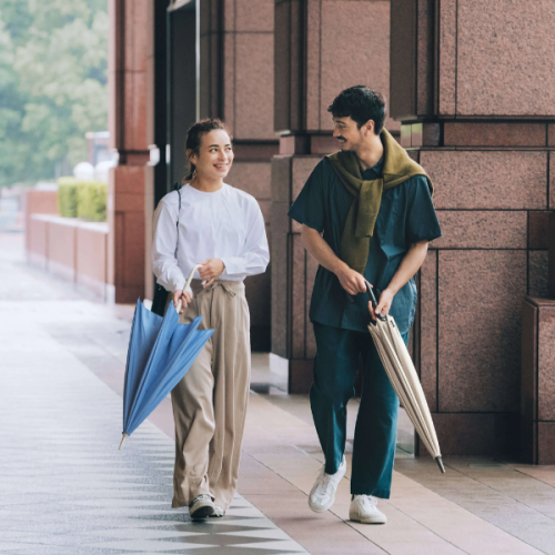 Els paraigües vénen en colors tranquils i suaus. Combinen bé amb qualsevol moda i són apropiats per a ocasions formals.