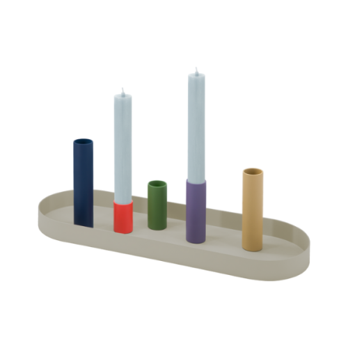Safata ovalada amb els 5 portaespelmes magnètics. S’adapta perfectament a superfícies estretes o rectangulars i es pot redecorar una i altra vegada segons les teves preferències.