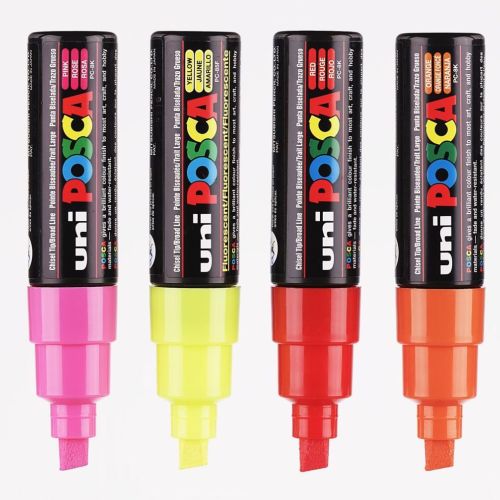 Retolador de punta gruixuda bisellada dibuixa corbes nítides i cobreix àmplies superfícies. Ideal per als plans llisos, els graffiti «Art Carrerer» pinten i dibuixen sobre qualsevol superfície en un espai interior o exterior. Tant per als aficionats com els professionals des dels surfistes i els skaters que customitzen seves taules fins als professionals que decoren els seus aparadors.