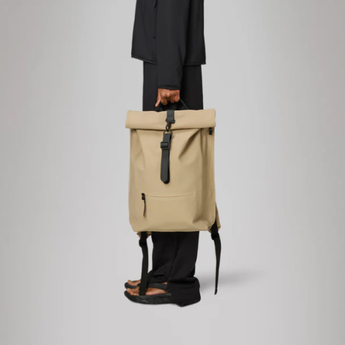 Rolltop Rucksack és una peça ideal per utilitzar en transports urbans tan en bicicleta com a peu.