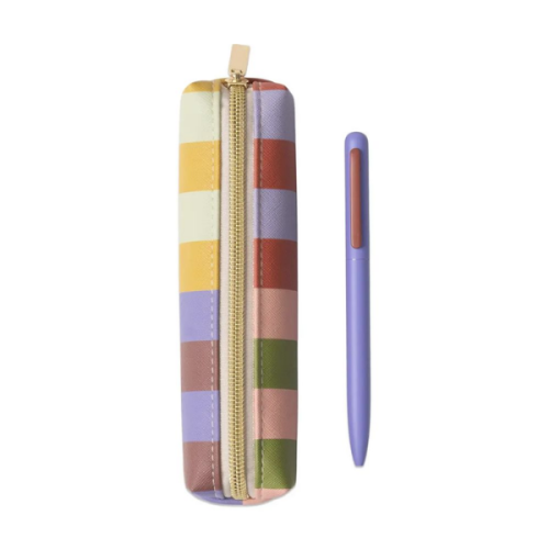 Afegeix un toc femení i atemporal a la teva escriptura diària amb el conjunt de bolígraf i estoig amb estampat de ratlles de colors. El estoig de pell vegana combina amb un bolígraf a joc, és pràctic i elegant, cosa que el converteix en un imprescindible per a escriure un diari, la feina o l’escola.