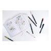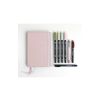 Porta 4 rotuladors ABT Dual Brush Pen amb punta de pinzell de niló flexible i punta fina de polièster per a cartes i notes acolorides, amb un retolador Fudenosuke amb punta fina elàstica per a cartes i codis de claus, un retolador fluorescent Mico Edge, amb dues puntes i portamines mono graph amb goma d’esborrar i el Brandbook – Quadern de notes d’alta qualitat, 160 pàgines, paper blanc brillant amb patró de punts.