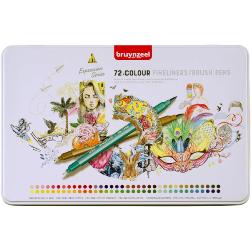 La capsa de 72 retoladors Bruynzeel Doble Punta Fineliner-Brush és un set essencial per a tots els amants de les belles arts. Amb un total de 72 retoladors, aquest set ofereix una àmplia gamma de colors que són perfectes per a diverses tècniques artístiques.