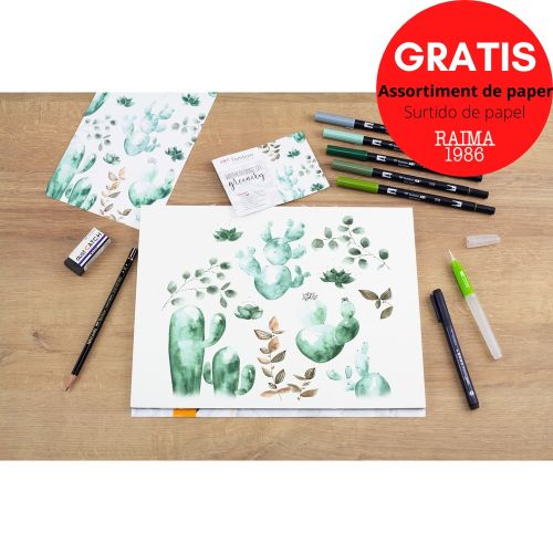 Tant si són il·lustracions florals o plantes de moda com Monstera, Pilea i suculentes, amb els jocs d’aquarel·la, està idealment equipat per a les seves il·lustracions en aquarel·la. Els sets han estat dissenyats i elaborats pel duo artístic May & Berry i inclouen un petit conjunt d’instruccions amb consells i trucs dels professionals. El joc conté cinc retoladors ABT Dual Brush amb punta fina i punta de pinzell per a amples de traç variables. Pot barrejar els colors per endavant a la paleta de mescla inclosa i després recollir-los i aplicar-los amb el pinzell d’aigua, creant un efecte d’aquarel·la. Amb el llapis MONO 100 i l’esborrany MONO dust CATCH, pot dibuixar les seves il·lustracions i després esborrar les línies guia novament sense fragments d’esborrany. Finalment, pot afegir contorns al seu il·lustració amb el llapis de dibuix MONO fineliner. El conjunt d’aquarel·les Greenery conté: 1 × ABT-098, 228, 249, 312, N52; WS-EFL01 (gruix de línia 0,24 mm); MONO 100 dur (MONO-100-H); MONO captura de pols (A-DC); raspall d’aigua fi (WB-FN-1P); paleta de barreja; instruccions