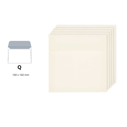 El sobre Q de 100 grams (160 x 160 mm) és l’opció ideal per a targetes quadrades, invitacions elegants o comunicacions amb estil.